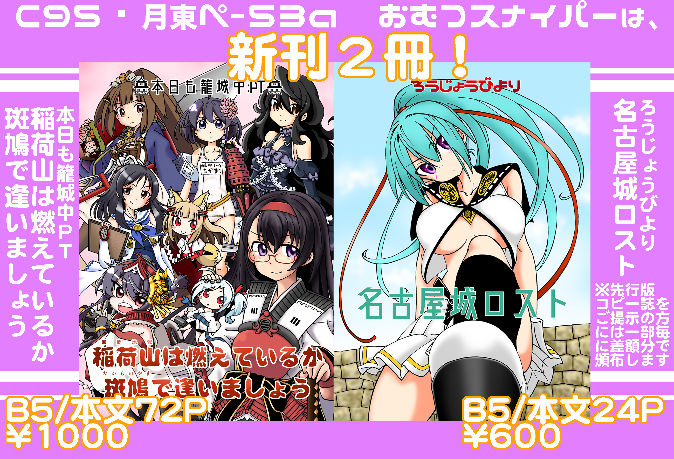 C95のご案内です。 イベント参加 2018年12月29日 またしてものご無沙汰しております。さしをです。 それはともかくもう年末。ということで、 今年も31日にコミケに参戦です。 卓番は東ぺ-53aのおむつスナイパーで、 出し物の詳細は↓の通りになります。 今回は何とか無理して新刊2冊という挙に及びましたが、 果たしてどうなりますやら。((((´皿`))))